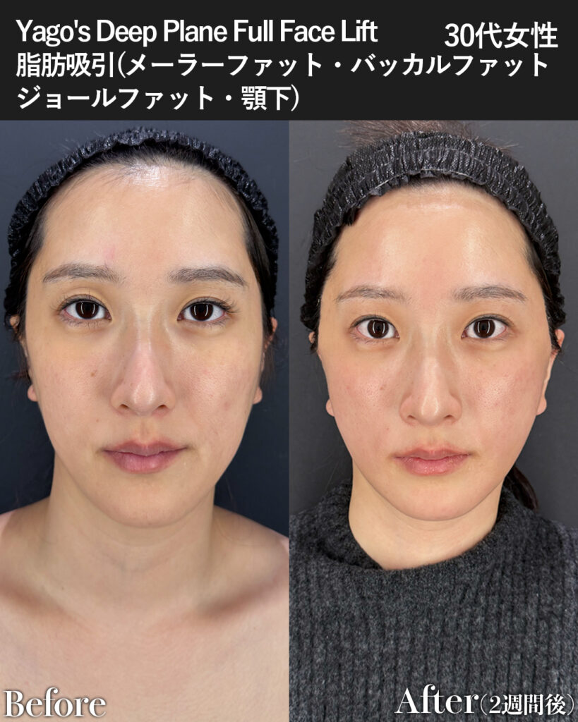 柳川院長矢後医師小顔/輪郭脂肪吸引切開リフト 30代の方:Yago’s Deep Plane Face Lift +脂肪吸引(メーラーファット・ジョールファット・バッカルファット・顎下) 執刀医 脂肪吸引:柳川院長 切開リフト:矢後医師 Other 柳川院長矢後医師小顔/輪郭脂肪吸引 30代の方:Yago’s Deep Plane Face Lift +脂肪吸引(ジョールファット・ナゾラビアルファット)+バッカルファット吊り上げ 柳川院長小顔/輪郭脂肪吸引 20代の方:脂肪吸引(チークボーンファット・ナゾラビアルファット・ジョールファット)+糸リフト 矢後医師小顔/輪郭 40代の方:Yago’s Deep Plane Face Lift +バッカルファット吊り上げ