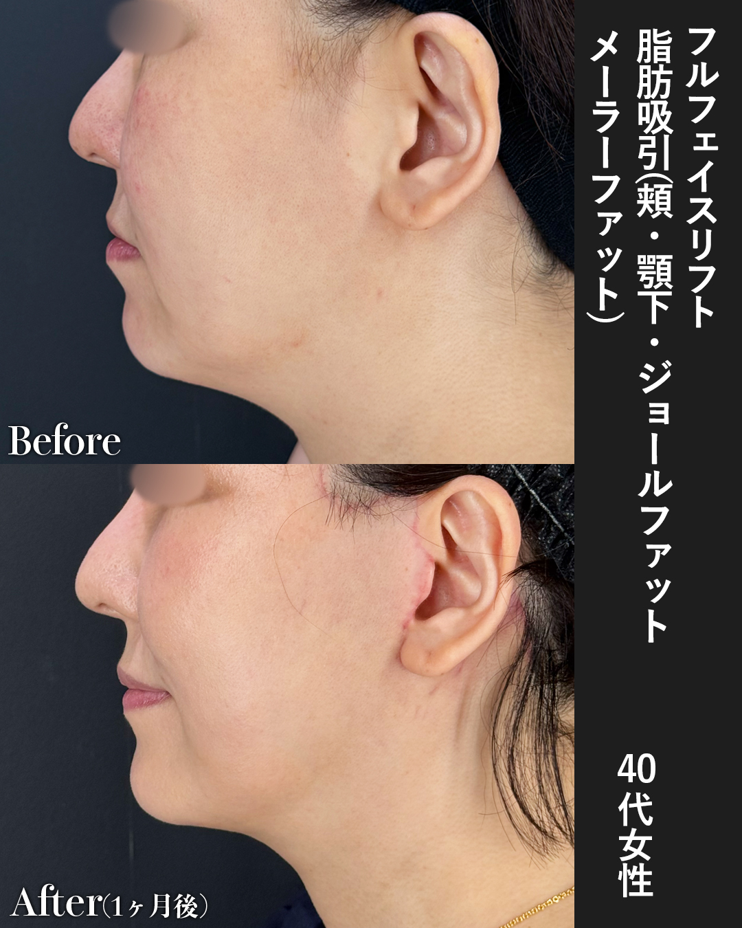 40代の方:フルフェイスリフト・バッカルファット吊り上げ・脂肪吸引(頬・顎下・ジョールファット)