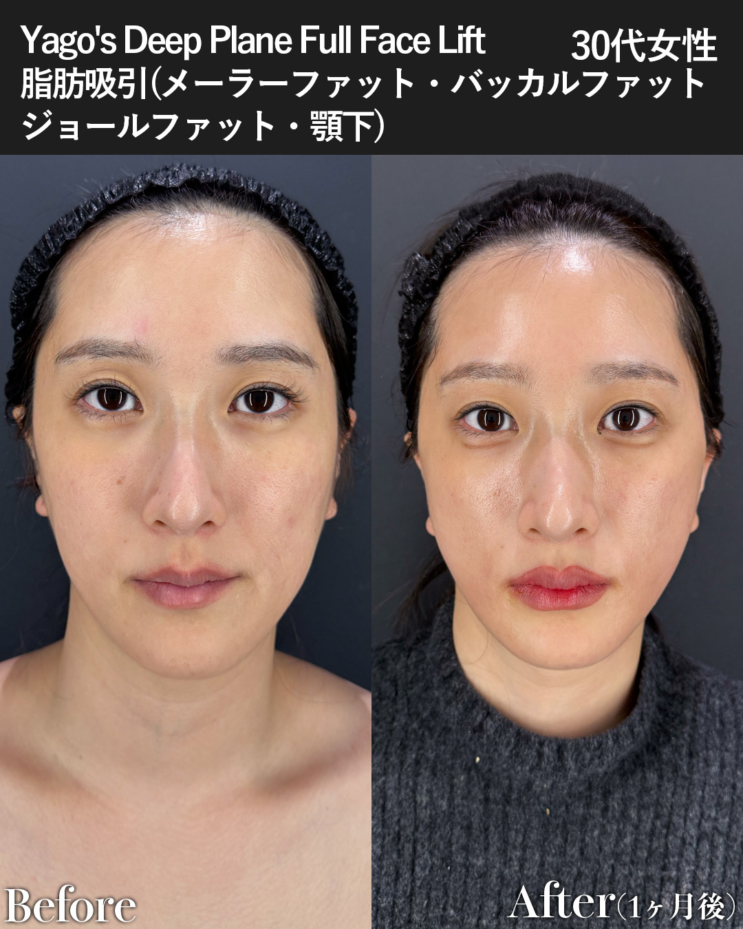 30代の方:Yago’s Deep Plane Face Lift +脂肪吸引(メーラーファット・ジョールファット・バッカルファット・顎下)