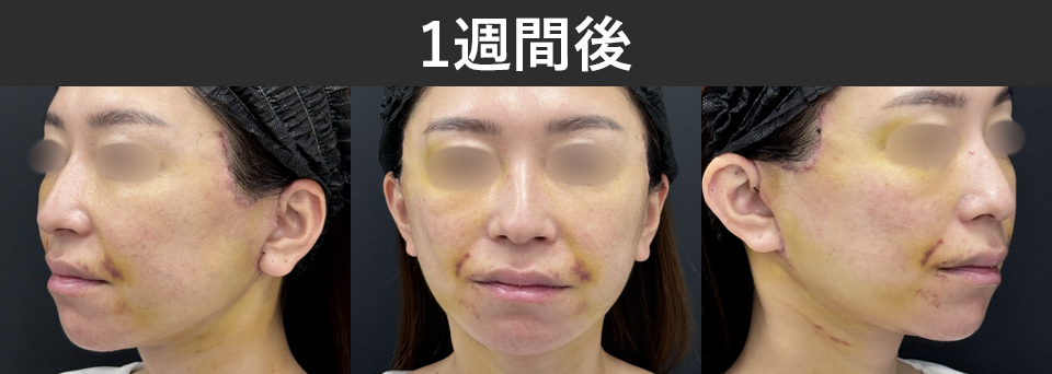 術後1週間は、切開リフト後の経過の中でも腫れ・内出血が最も目立ちやすい時期です。